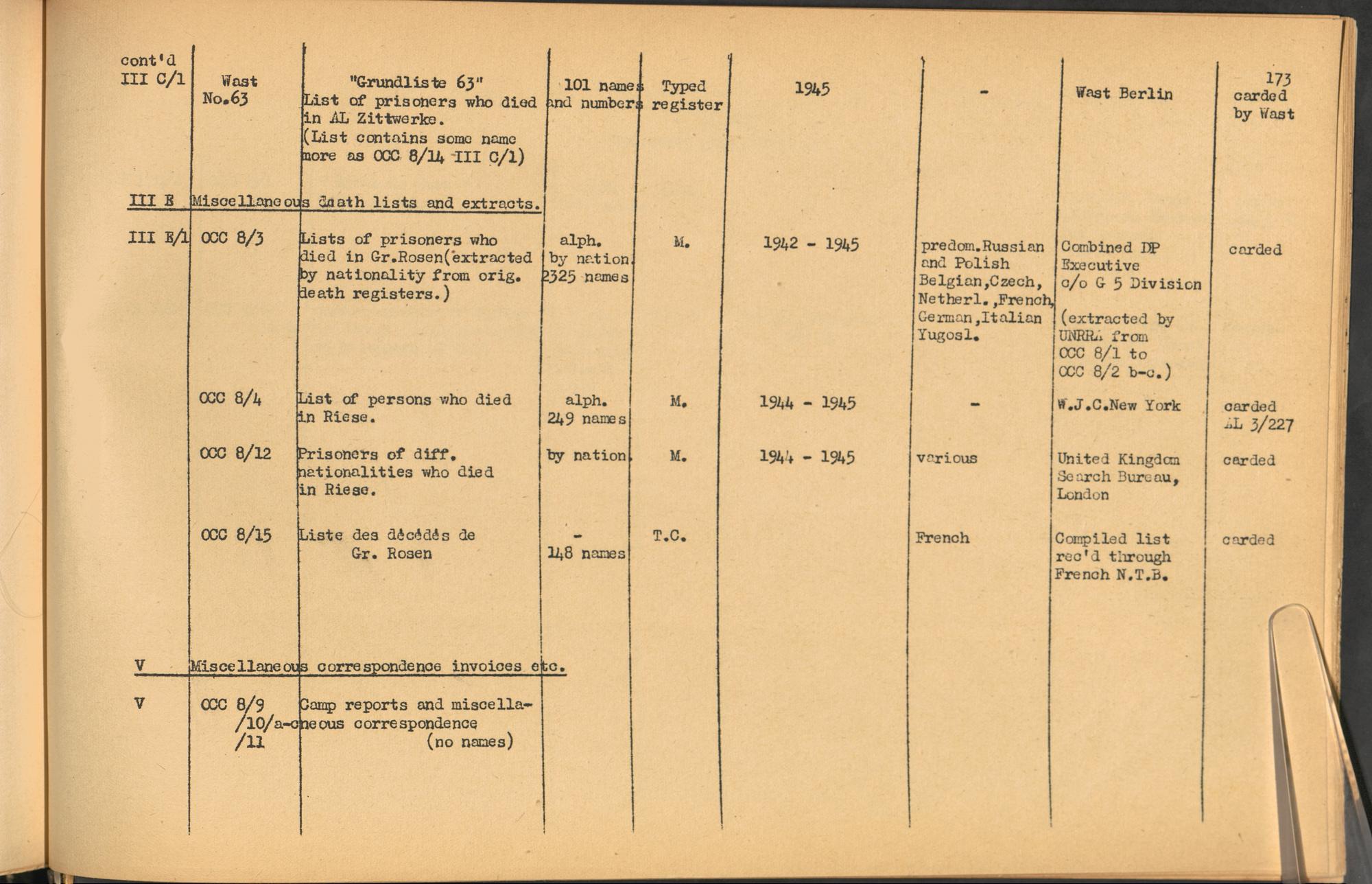 Band 1: Catalogue of Concentration Camp Records held by the International Tracing Service of the Allied High Commission for Germany, Volume I