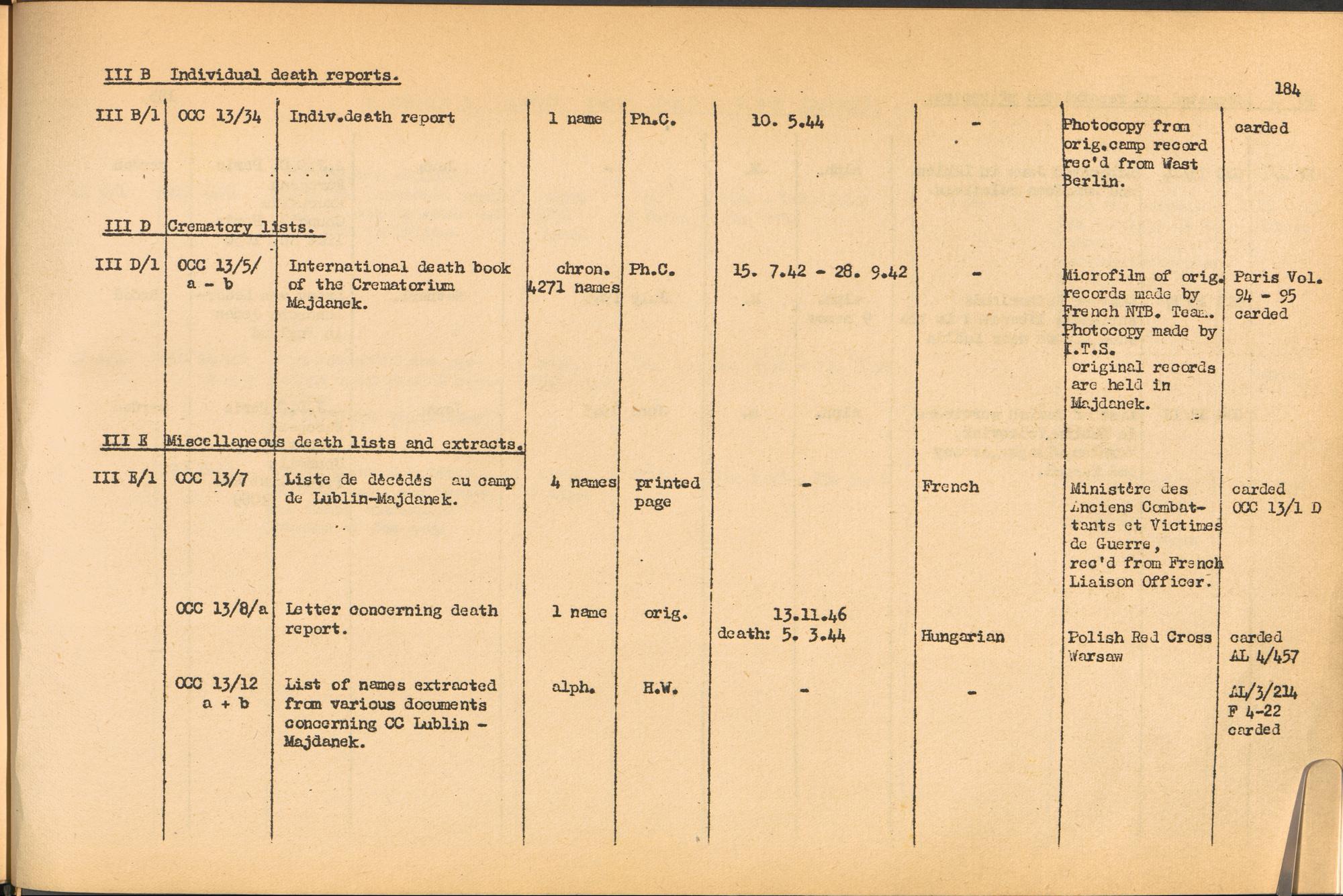 Band 1: Catalogue of Concentration Camp Records held by the International Tracing Service of the Allied High Commission for Germany, Volume I