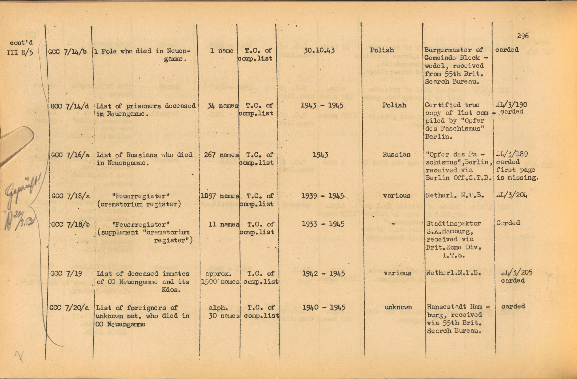 Band 2: Catalogue of Concentration Camp Records held by the International Tracing Service of the Allied High Commission for Germany, Volume II