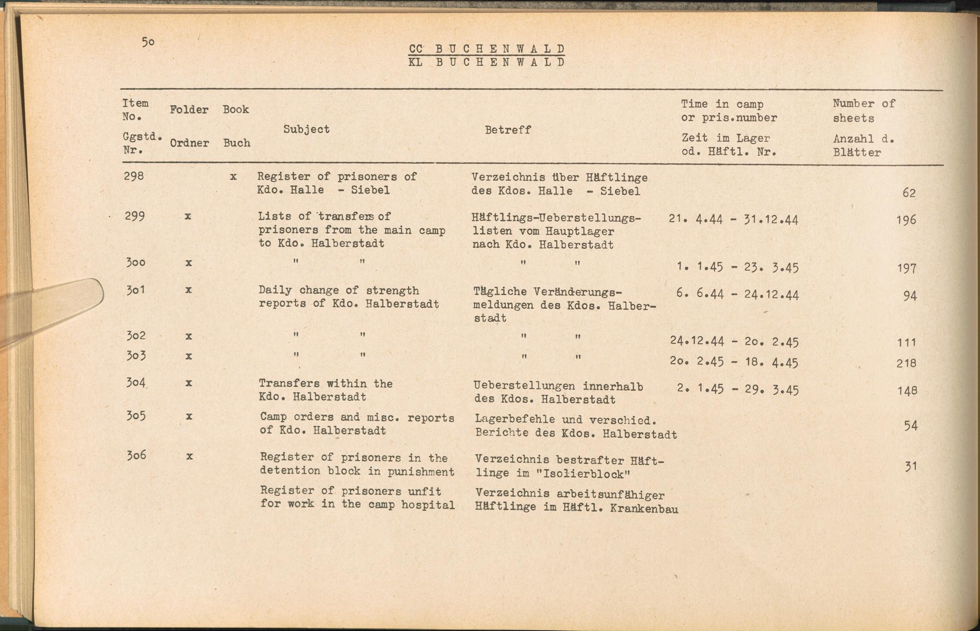 Band 1 (1954) Catalogue of Records held by the International Tracing Service of the Allied High Commission For Germany at Arolsen : War time records, Vol. I