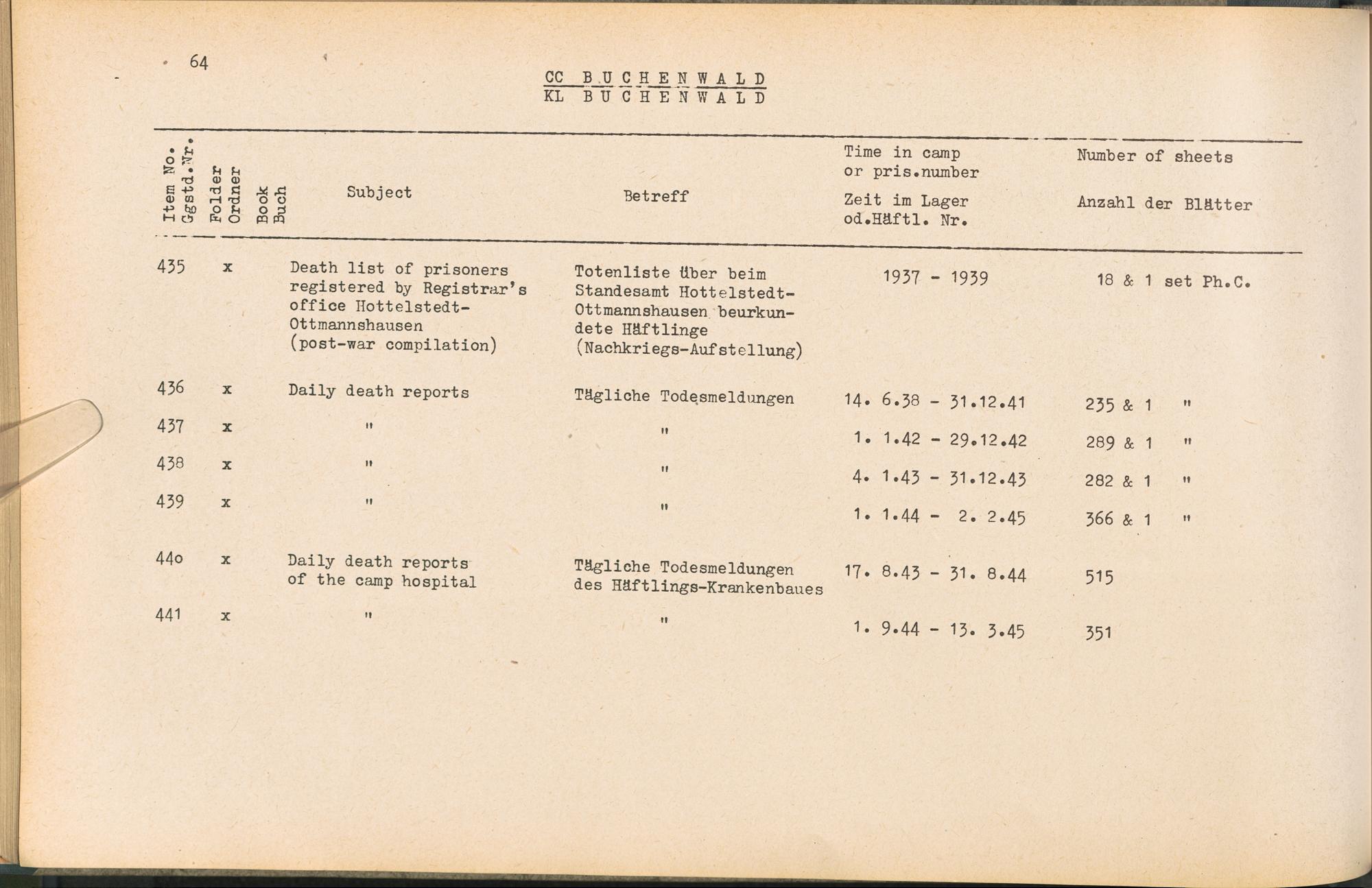 Band 1 (1954) Catalogue of Records held by the International Tracing Service of the Allied High Commission For Germany at Arolsen : War time records, Vol. I