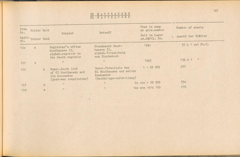 Band 1 (1954) Catalogue of Records held by the International Tracing Service of the Allied High Commission For Germany at Arolsen : War time records, Vol. I