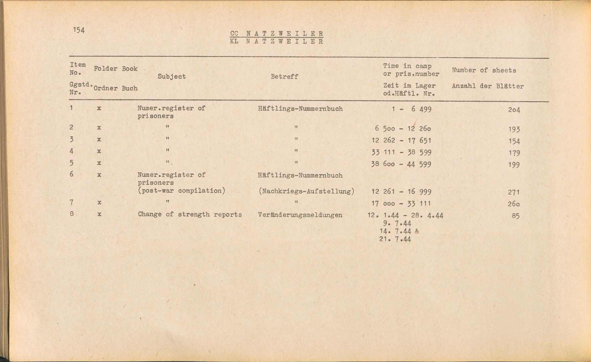 Band 1 (1954) Catalogue of Records held by the International Tracing Service of the Allied High Commission For Germany at Arolsen : War time records, Vol. I