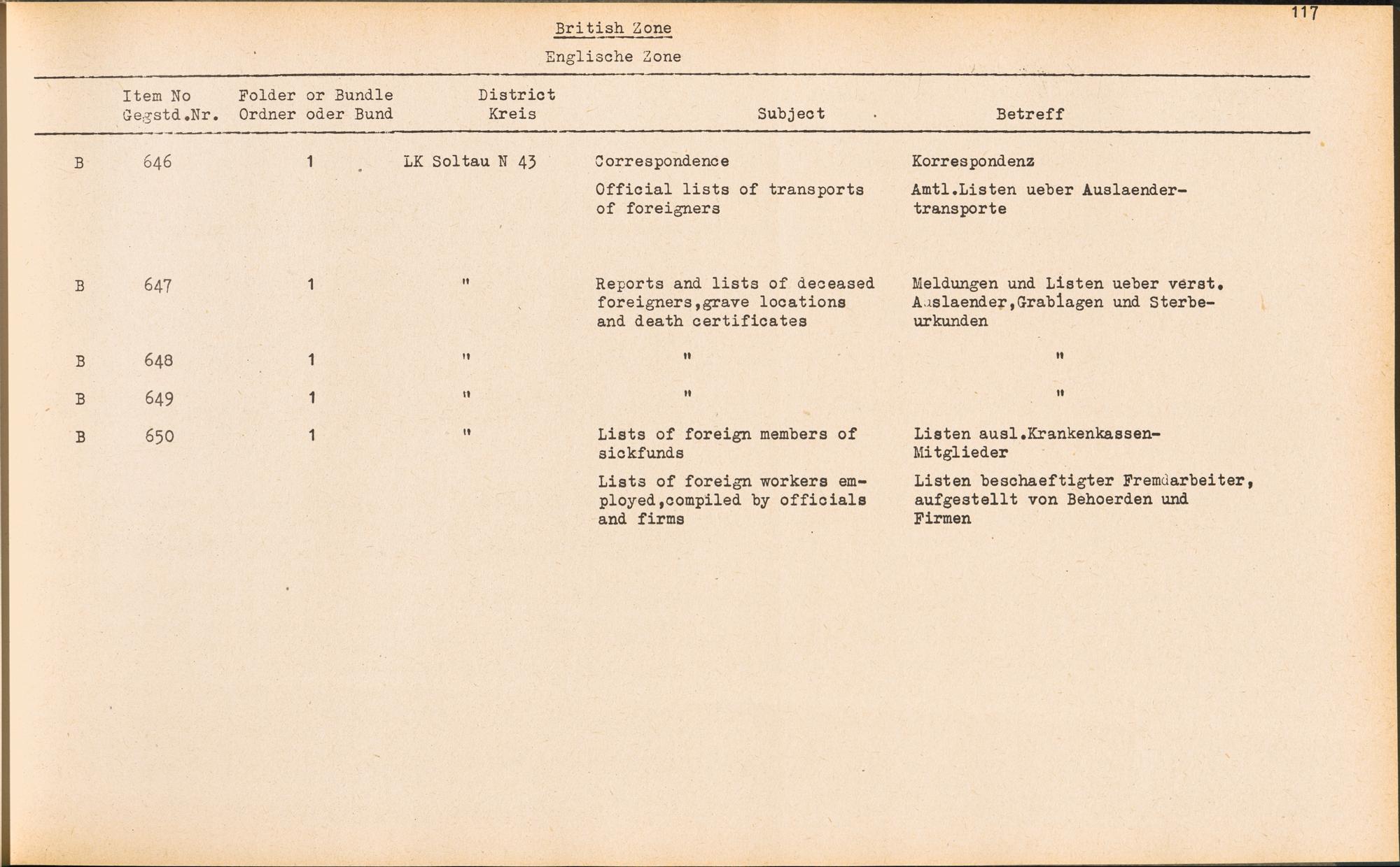 Catalogue of Records held by the International Tracing Service of the Allied High... Band 3. Catalogue of Records held by the International Tracing Service of the Allied... British Zone - Englische Zone