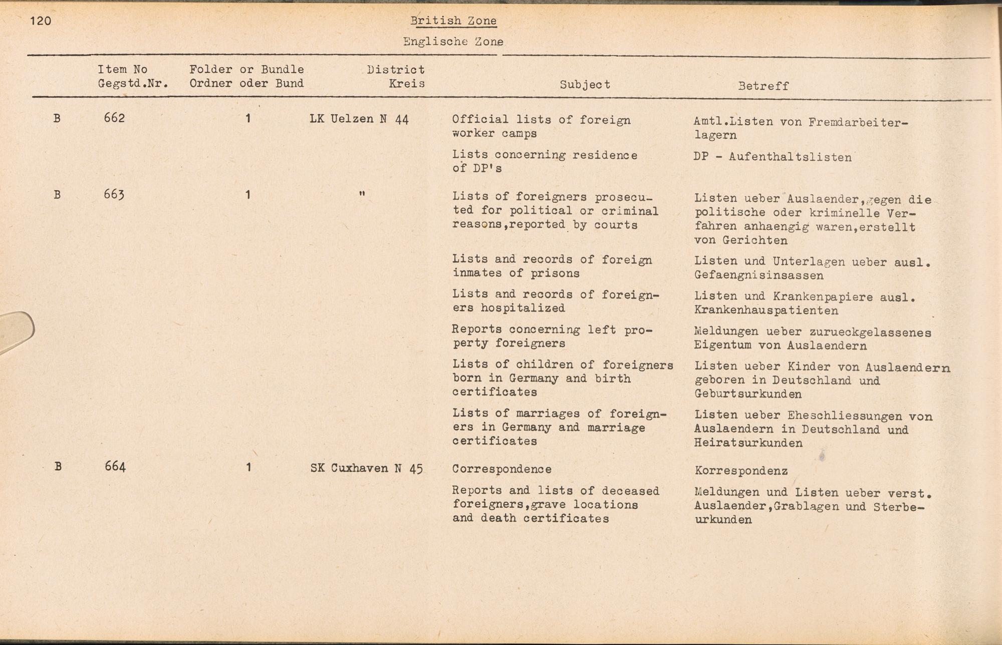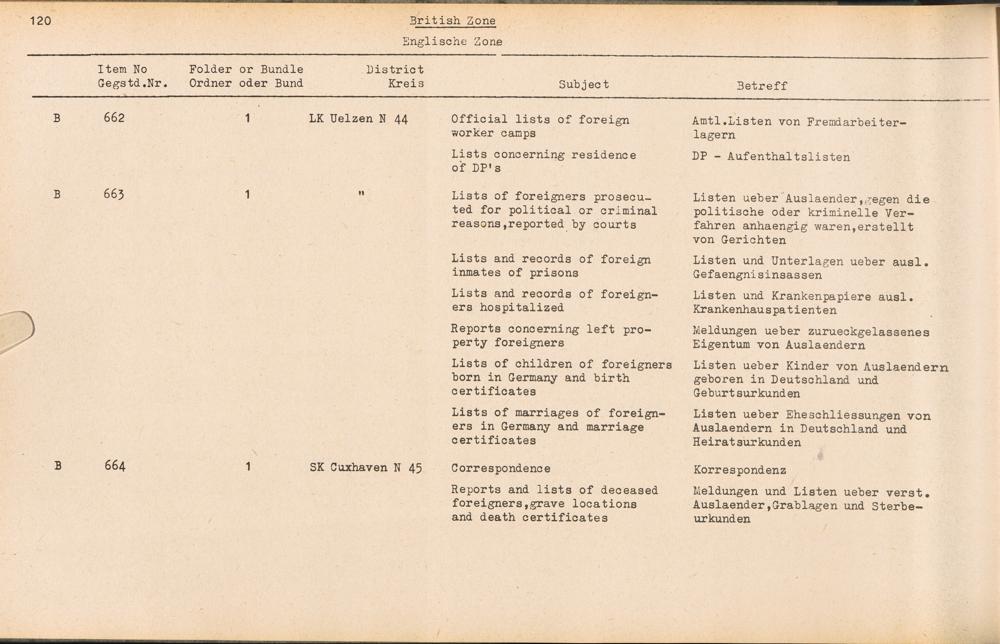 Catalogue of Records held by the International Tracing Service of the Allied High... Band 3. Catalogue of Records held by the International Tracing Service of the Allied... British Zone - Englische Zone