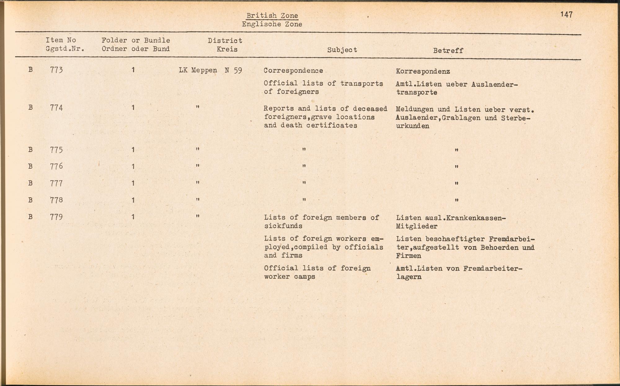 Catalogue of Records held by the International Tracing Service of the Allied High... Band 3. Catalogue of Records held by the International Tracing Service of the Allied... British Zone - Englische Zone