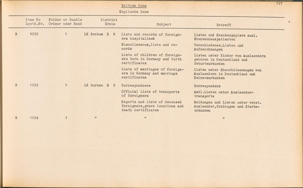 Catalogue of Records held by the International Tracing Service of the Allied High... Band 3. Catalogue of Records held by the International Tracing Service of the Allied... British Zone - Englische Zone