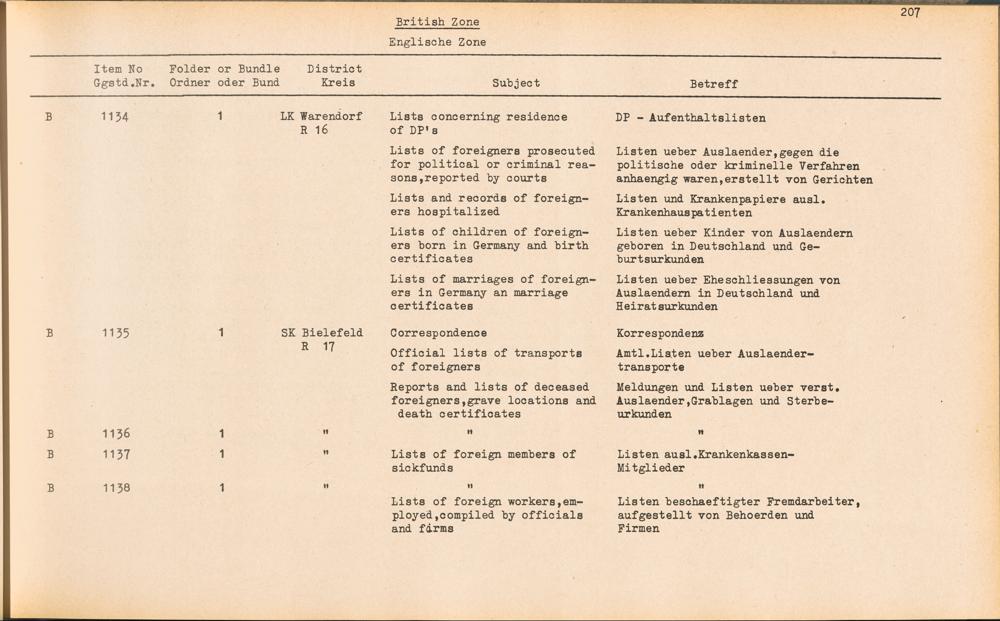 Catalogue of Records held by the International Tracing Service of the Allied High... Band 3. Catalogue of Records held by the International Tracing Service of the Allied... British Zone - Englische Zone