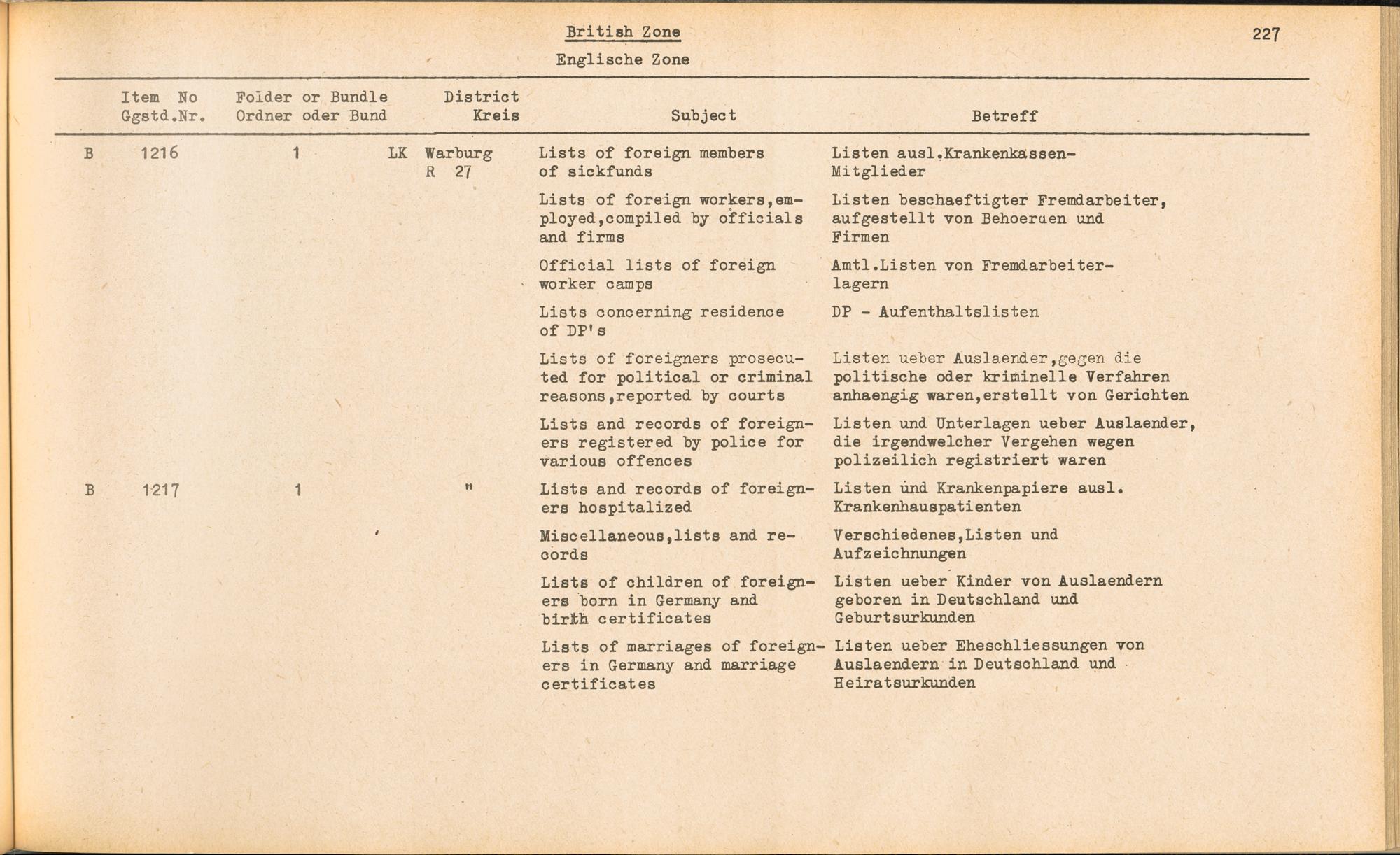PDF Band 2. Catalogue of Records held by the International Tracing Service of the Allied High Commission For Germany at Arolsen