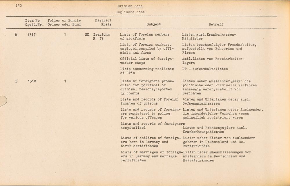 PDF Band 2. Catalogue of Records held by the International Tracing Service of the Allied High Commission For Germany at Arolsen