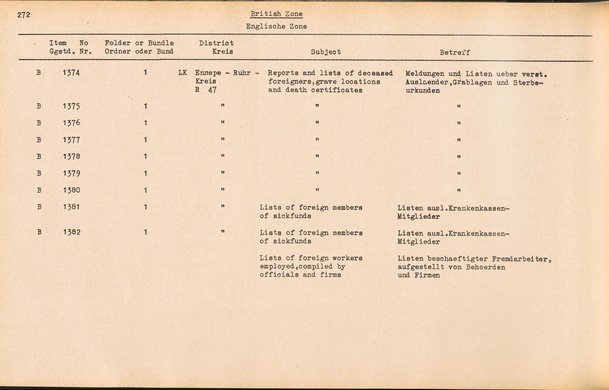 PDF Band 2. Catalogue of Records held by the International Tracing Service of the Allied High Commission For Germany at Arolsen