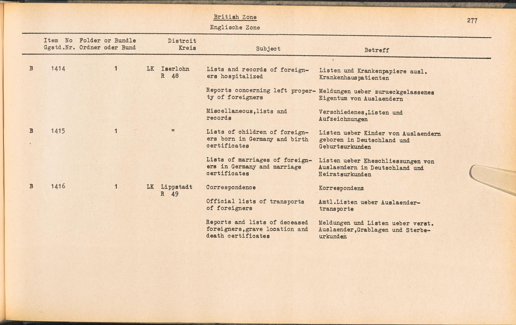 Catalogue of Records held by the International Tracing Service of the Allied High... Band 3. Catalogue of Records held by the International Tracing Service of the Allied... British Zone - Englische Zone