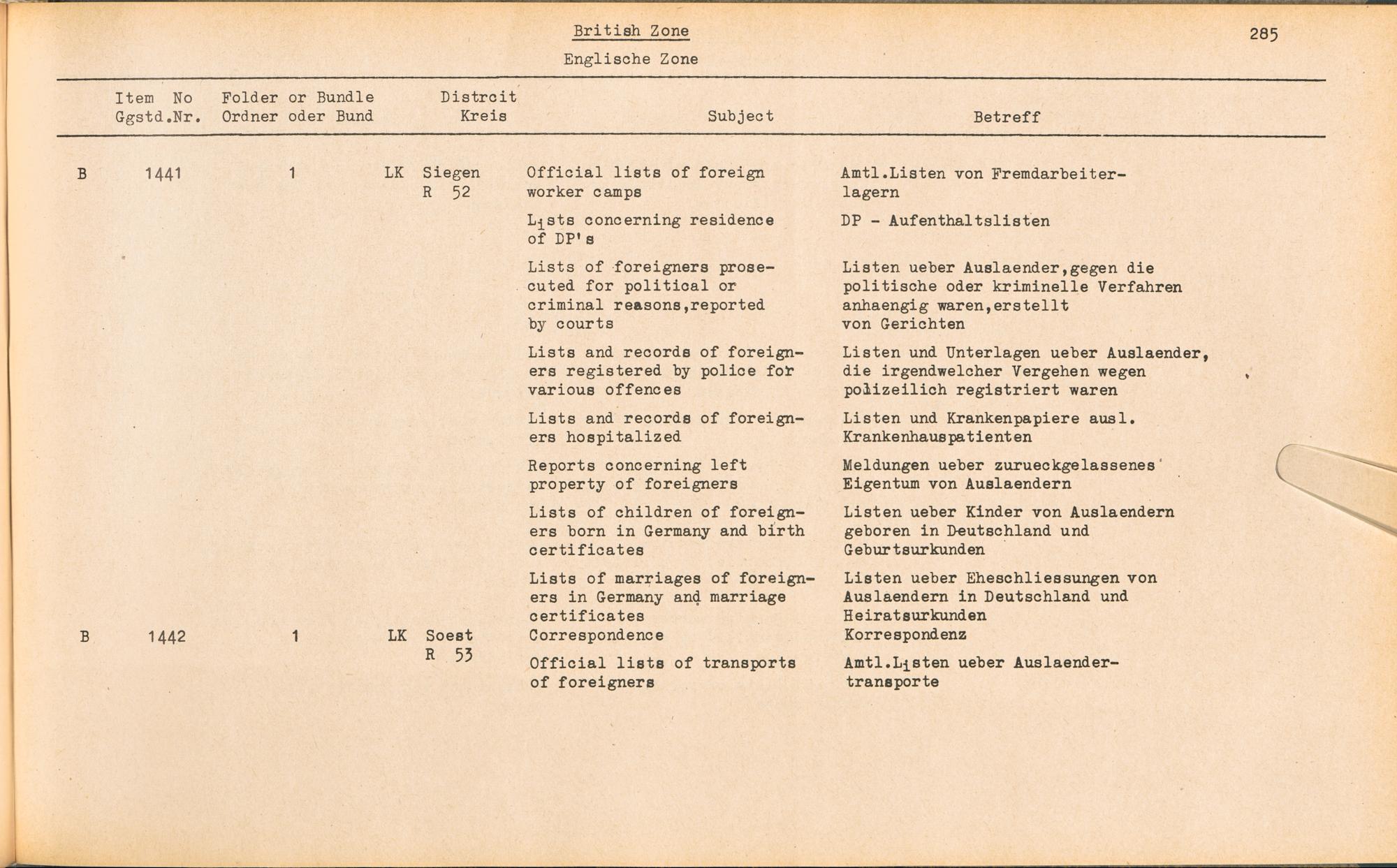 PDF Band 2. Catalogue of Records held by the International Tracing Service of the Allied High Commission For Germany at Arolsen