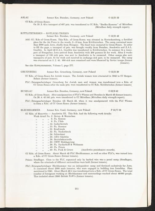 Catalogue of Camps and Prisons in Germany and german-occupied Territories Sept. 1st, 1939 - May 8th, 1945 : Vol. II