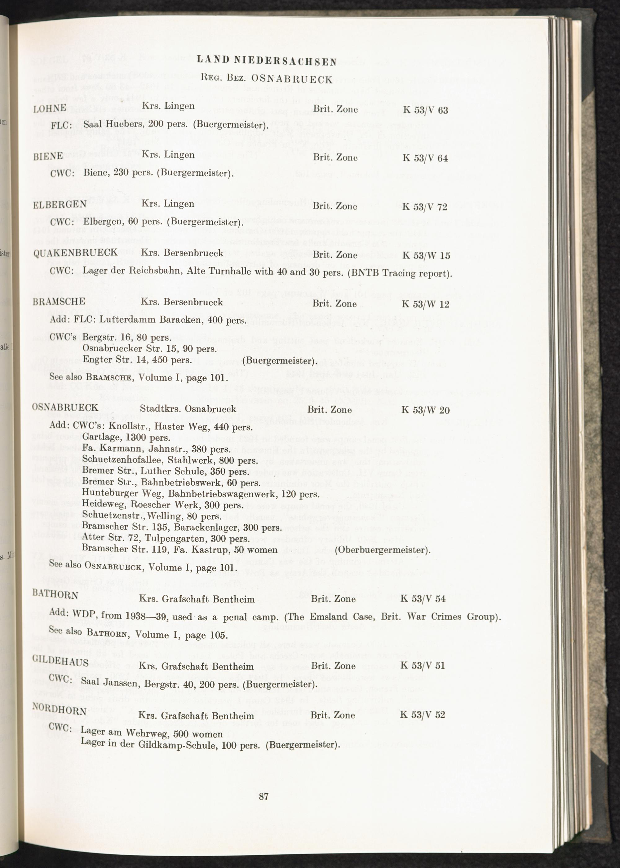 Catalogue of Camps and Prisons in Germany and german-occupied Territories Sept. 1st, 1939 - May 8th, 1945 : Vol. II and Supplement