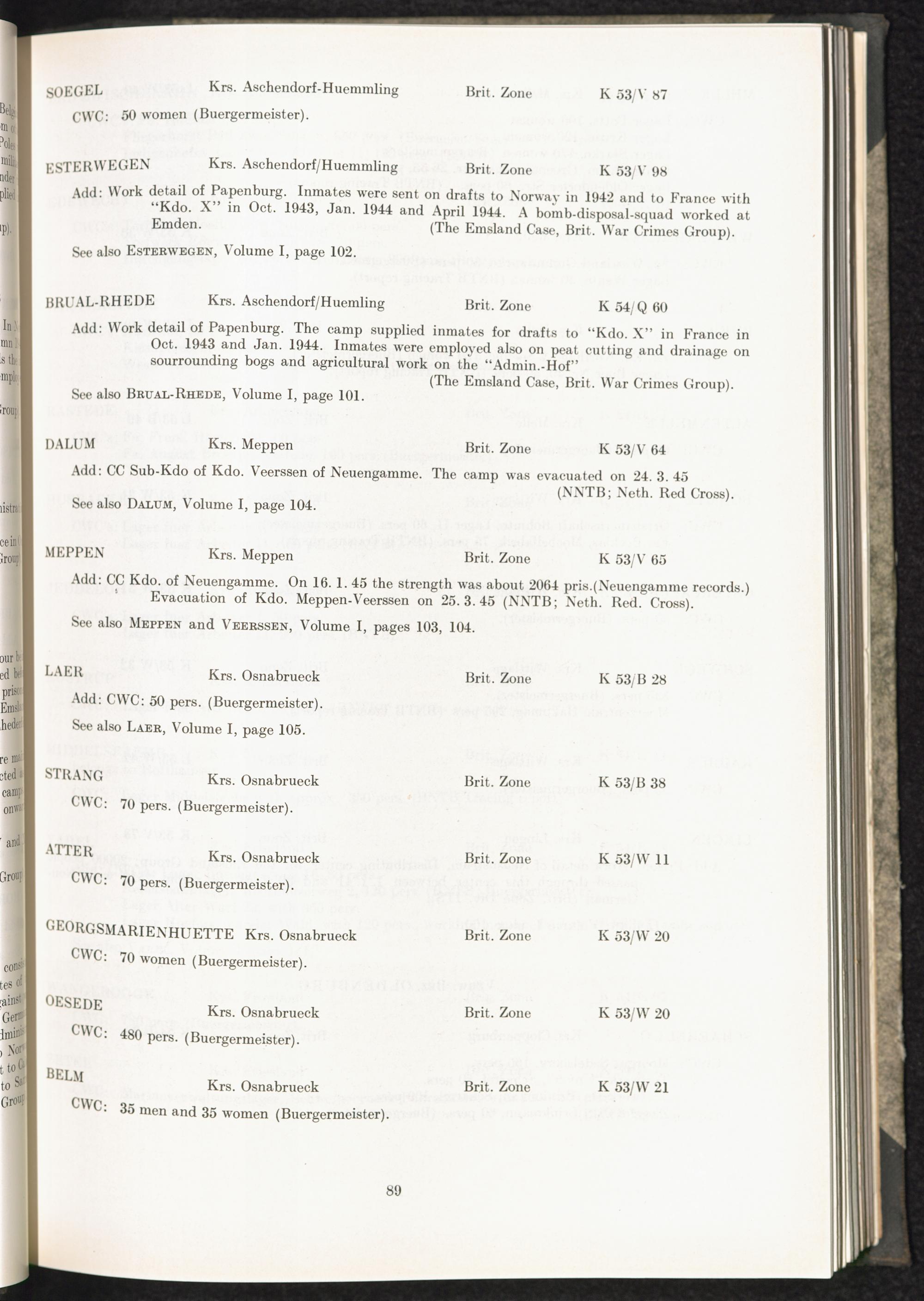 Catalogue of Camps and Prisons in Germany and german-occupied Territories Sept. 1st, 1939 - May 8th, 1945 : Vol. II and Supplement