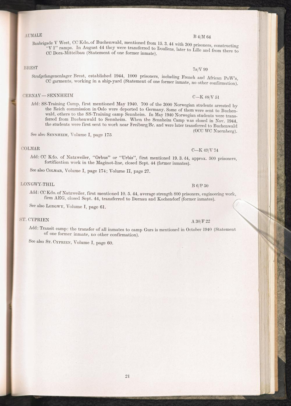 Catalogue of Camps and Prisons in Germany and german-occupied Territories Sept. 1st, 1939 - May 8th, 1945 : Vol. II and Supplement