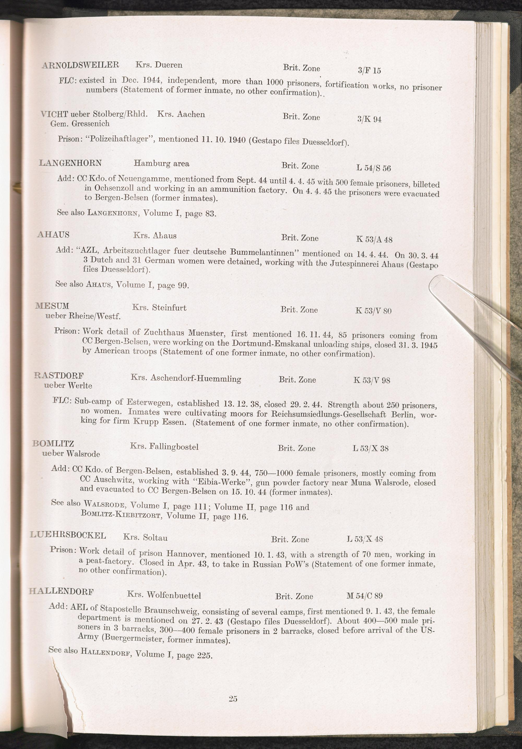 Catalogue of Camps and Prisons in Germany and german-occupied Territories Sept. 1st, 1939 - May 8th, 1945 : Vol. II and Supplement