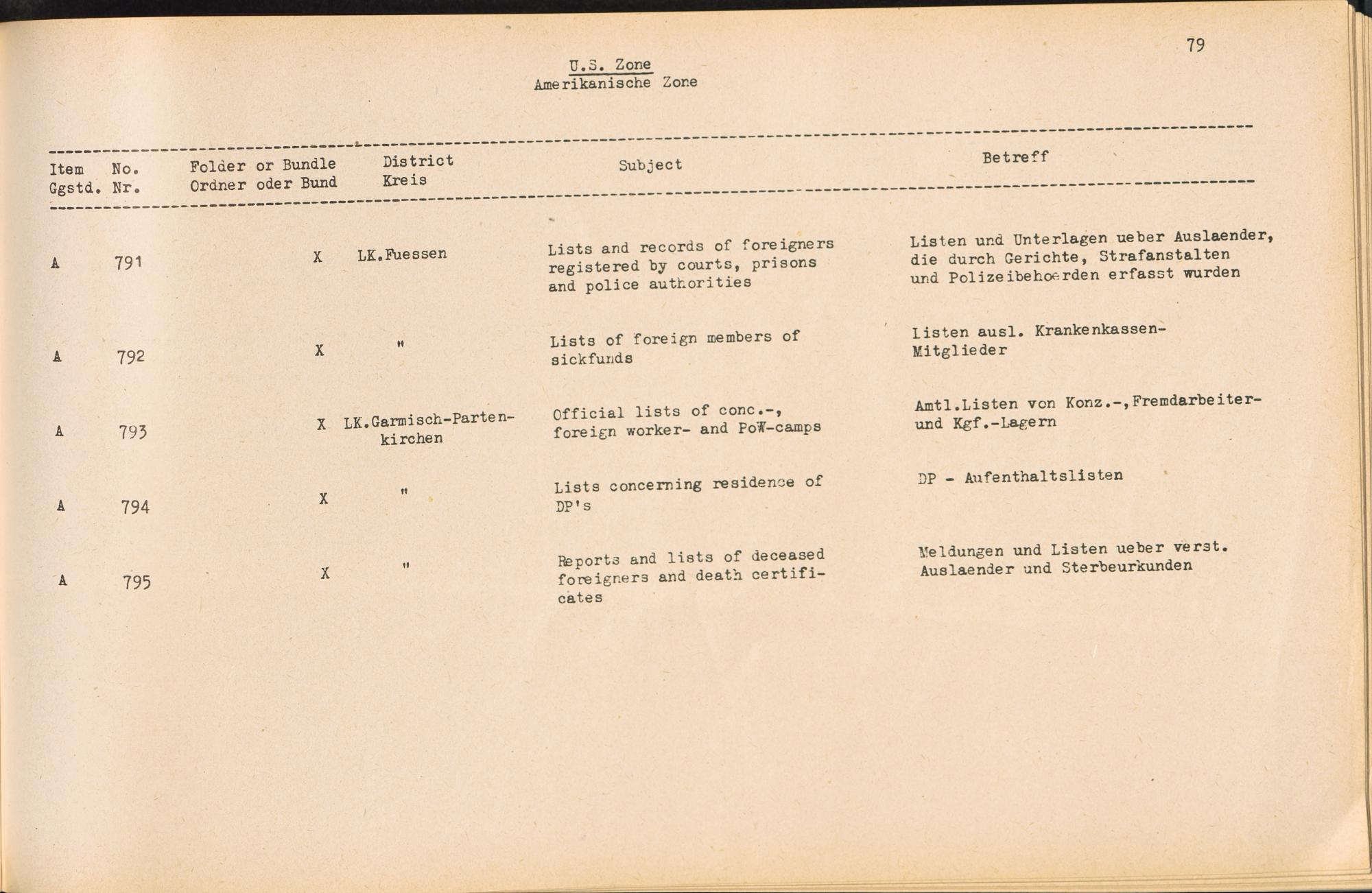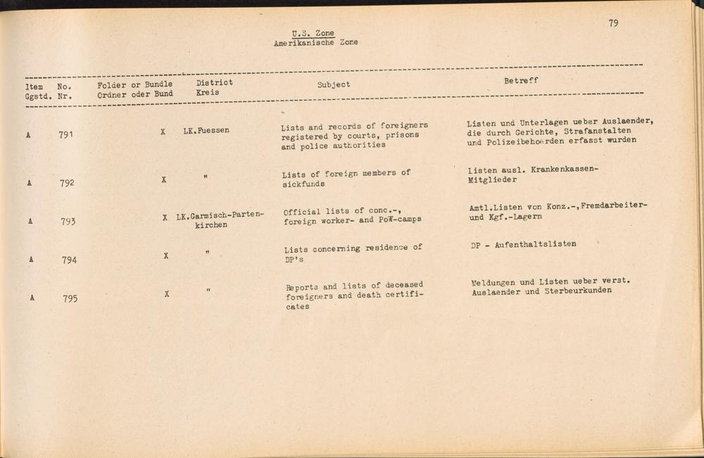 Catalogue of Records held by the International Tracing Service of the Allied High Commission For Germany at Arolsen : Vol. II
