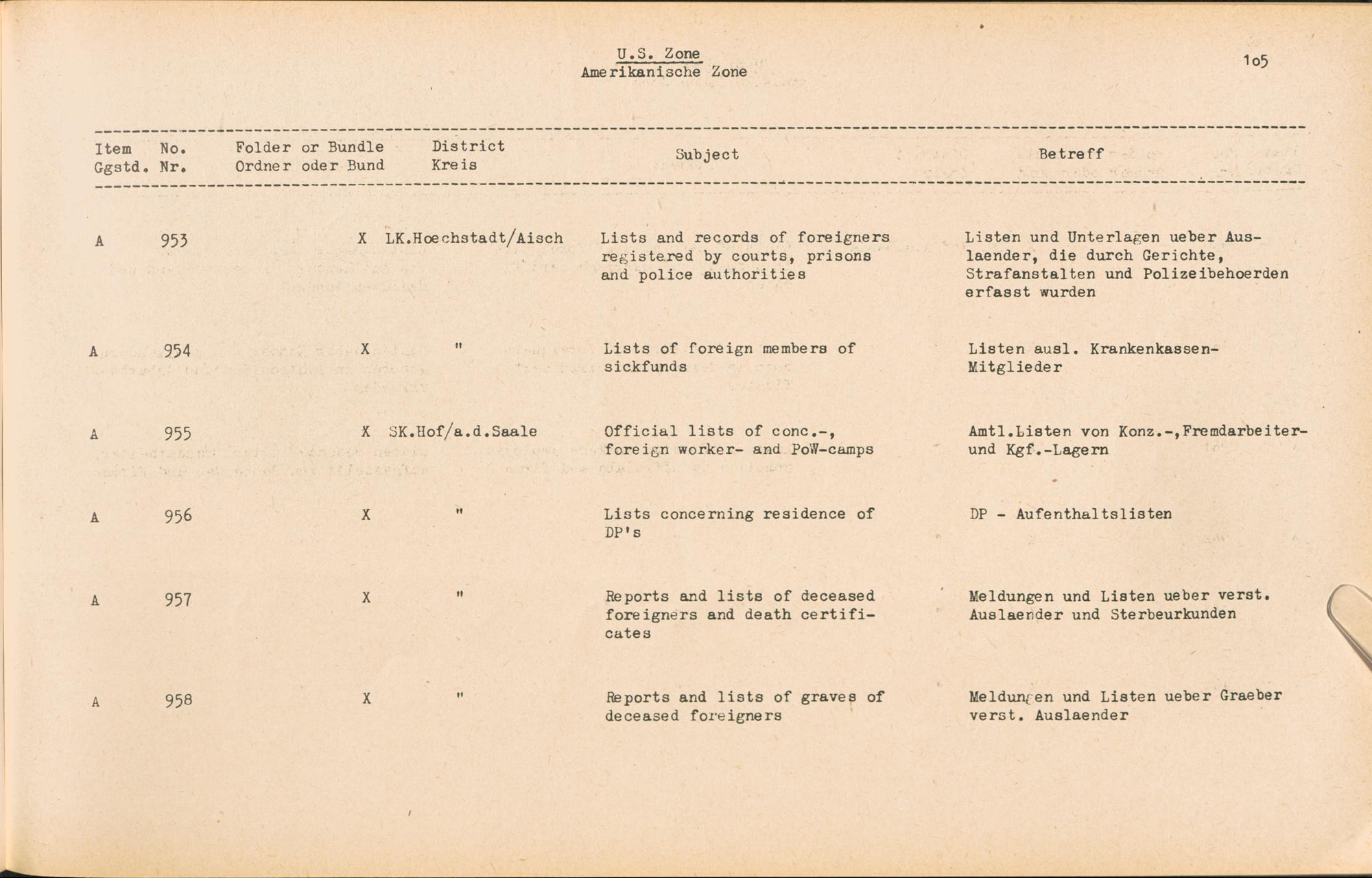 Catalogue of Records held by the International Tracing Service of the Allied High Commission For Germany at Arolsen : Vol. II