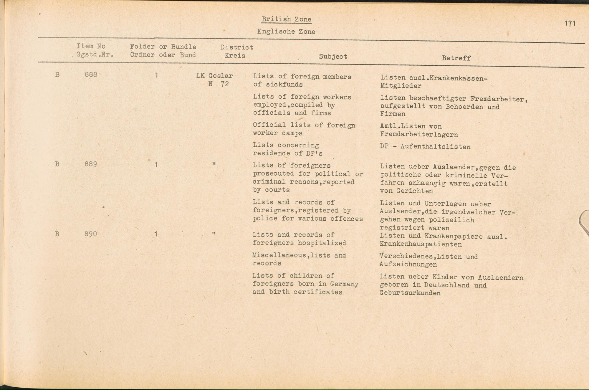 Catalogue of Records held by the International Tracing Service of the Allied High Commission For Germany at Arolsen : Vol. III