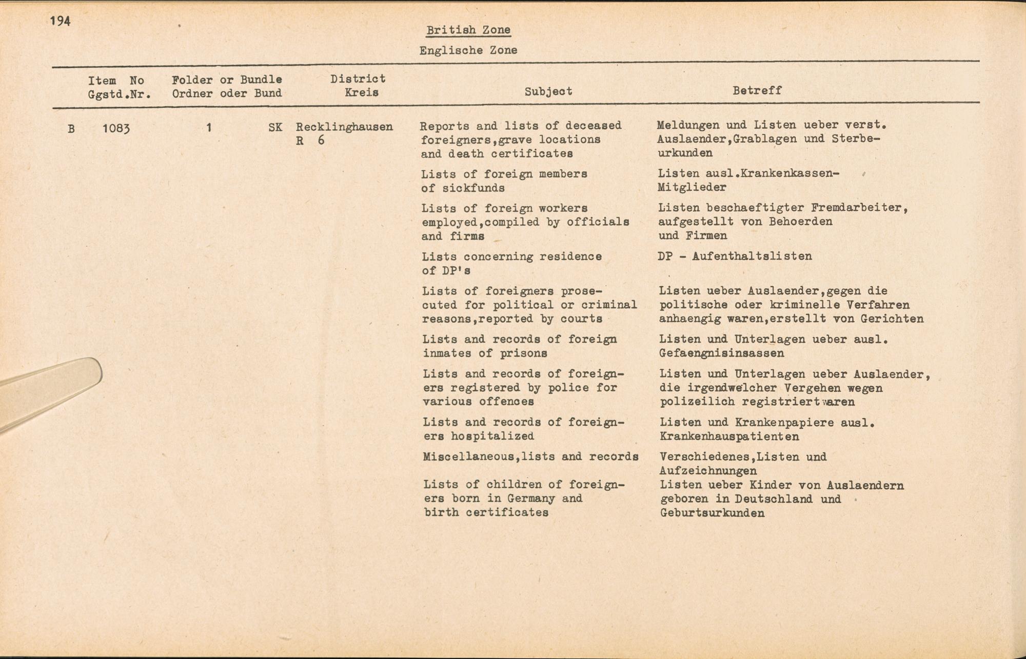Catalogue of Records held by the International Tracing Service of the Allied High Commission For Germany at Arolsen : Vol. III