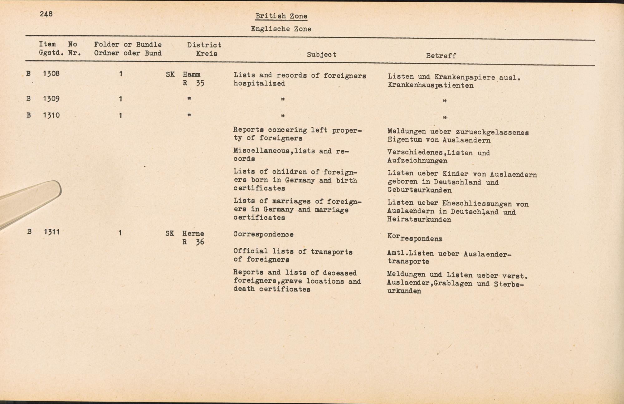 Catalogue of Records held by the International Tracing Service of the Allied High Commission For Germany at Arolsen : Vol. III