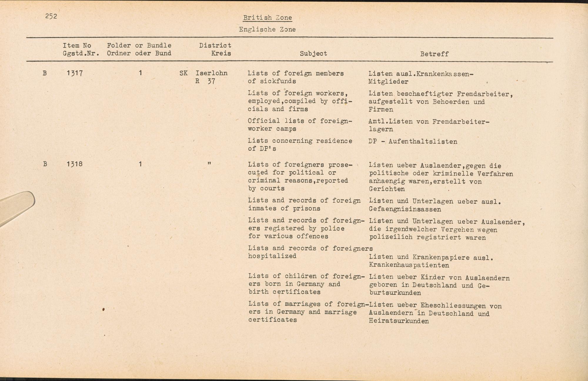 Catalogue of Records held by the International Tracing Service of the Allied High Commission For Germany at Arolsen : Vol. III