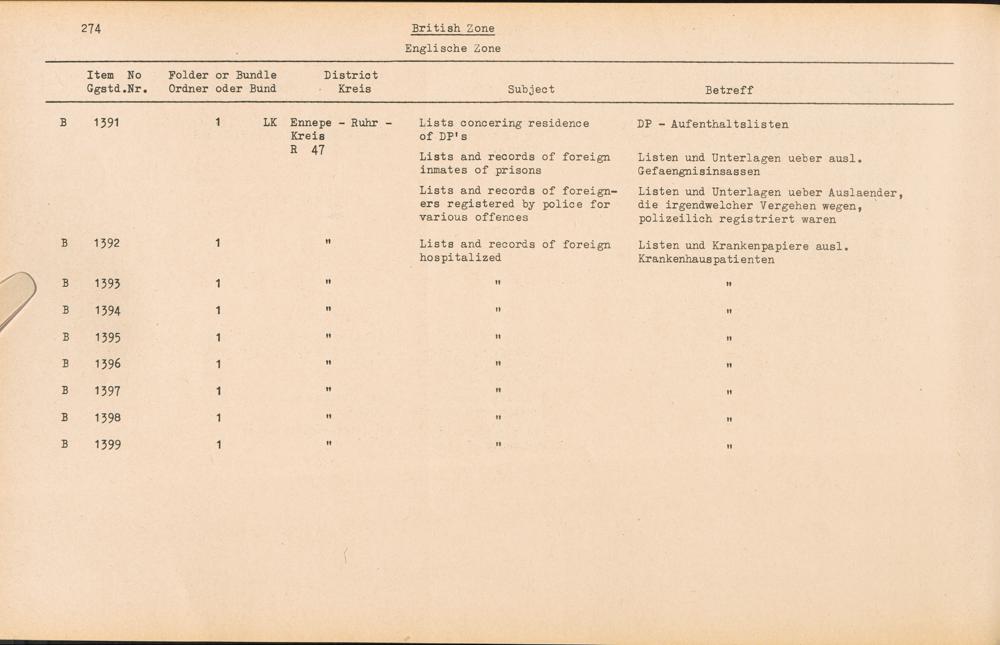 Catalogue of Records held by the International Tracing Service of the Allied High Commission For Germany at Arolsen : Vol. III