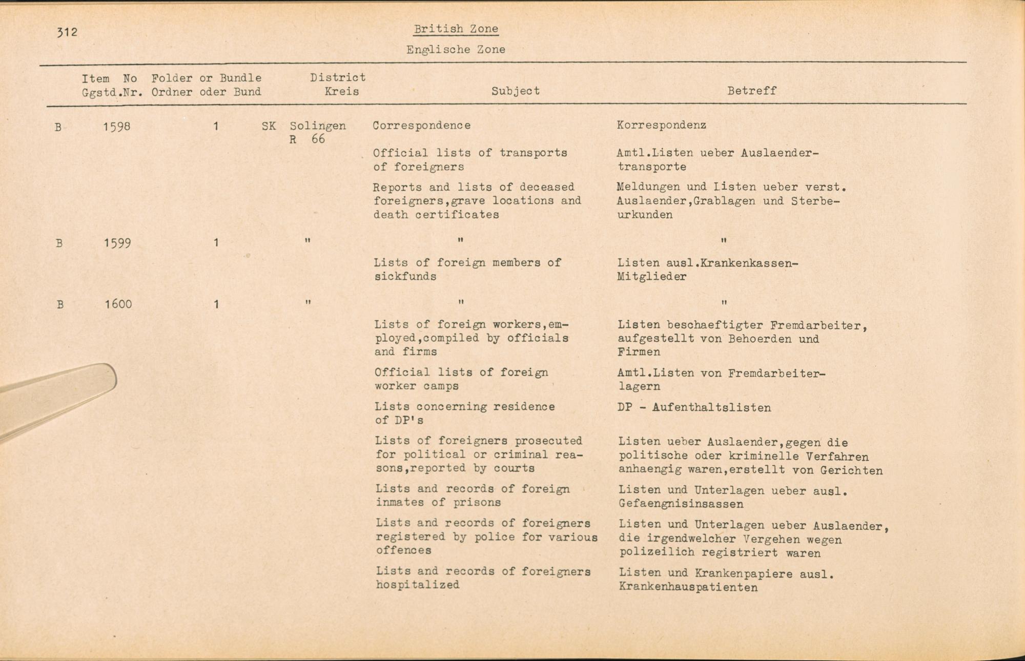 Catalogue of Records held by the International Tracing Service of the Allied High Commission For Germany at Arolsen : Vol. III