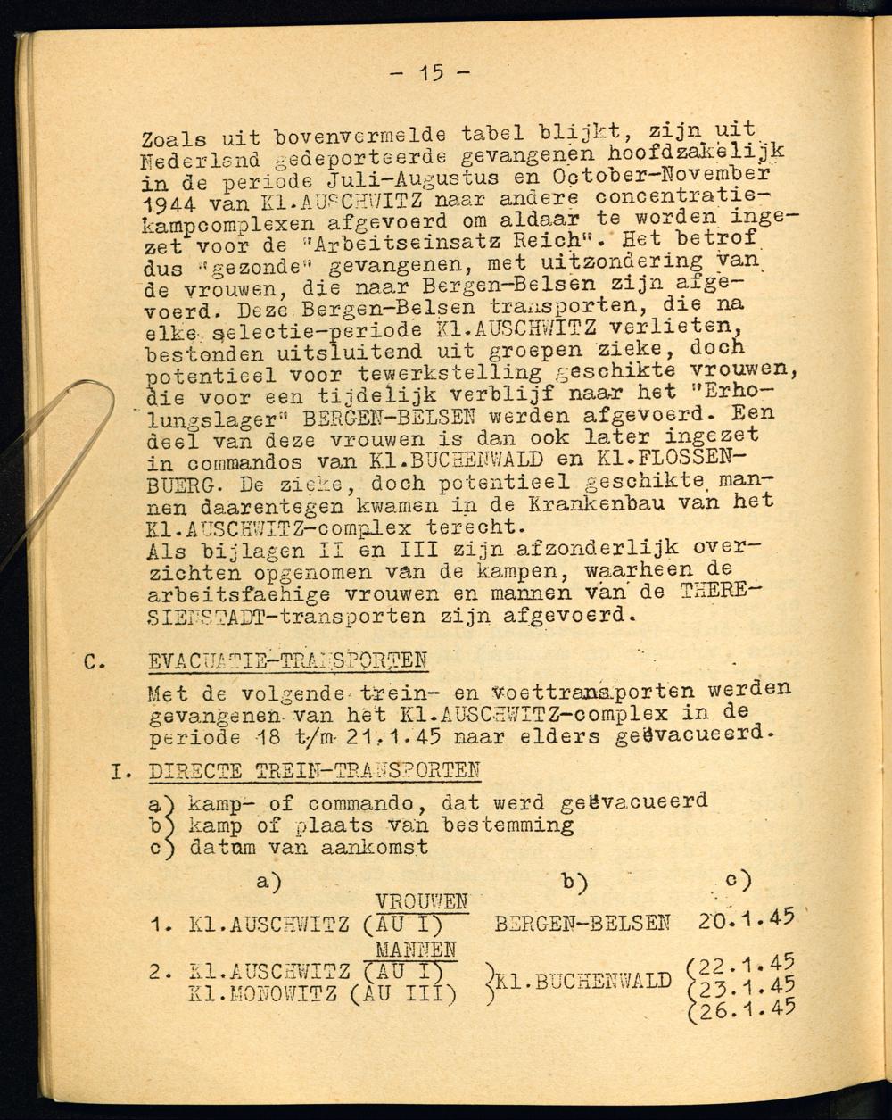 Auschwitz : VI: De afvoertransporten uit Auschwitz en omgeving naar het noorden en het westen en de grote evacuatietransporten / Hoofdbestuur van de Vereniging Het Nederlandsche Roode Kruis