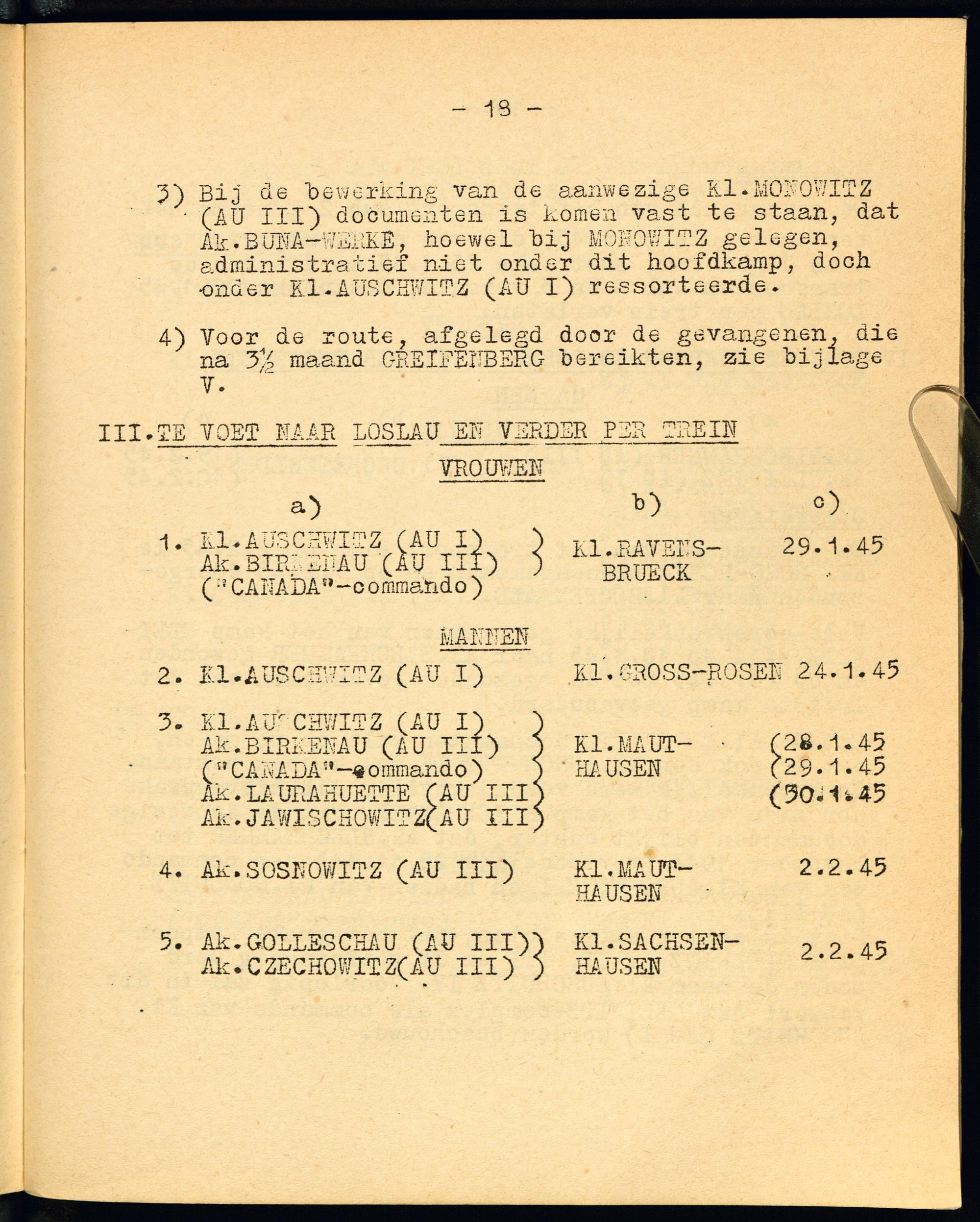 Auschwitz : VI: De afvoertransporten uit Auschwitz en omgeving naar het noorden en het westen en de grote evacuatietransporten / Hoofdbestuur van de Vereniging Het Nederlandsche Roode Kruis