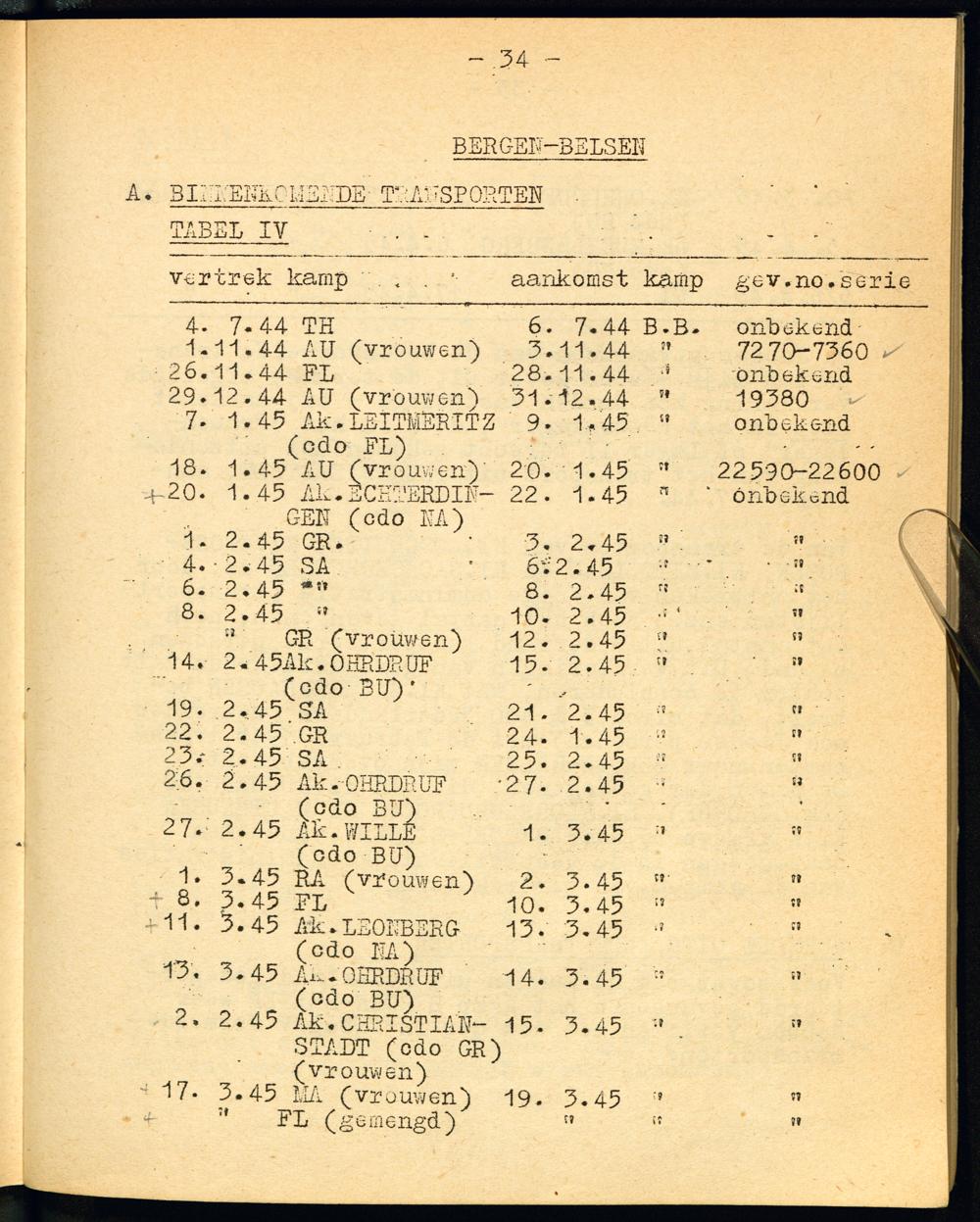 Auschwitz Binnenkomende - Uitgaande - en Evacuatie-Transporten enz. Bergen-Belsen