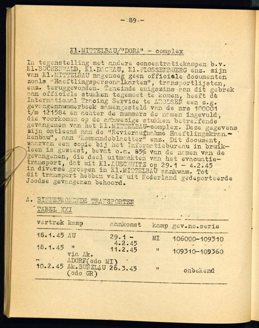 Auschwitz Binnenkomende - Uitgaande - en Evacuatie-Transporten enz. Kl. Mittelbau/"Dora"-Complex