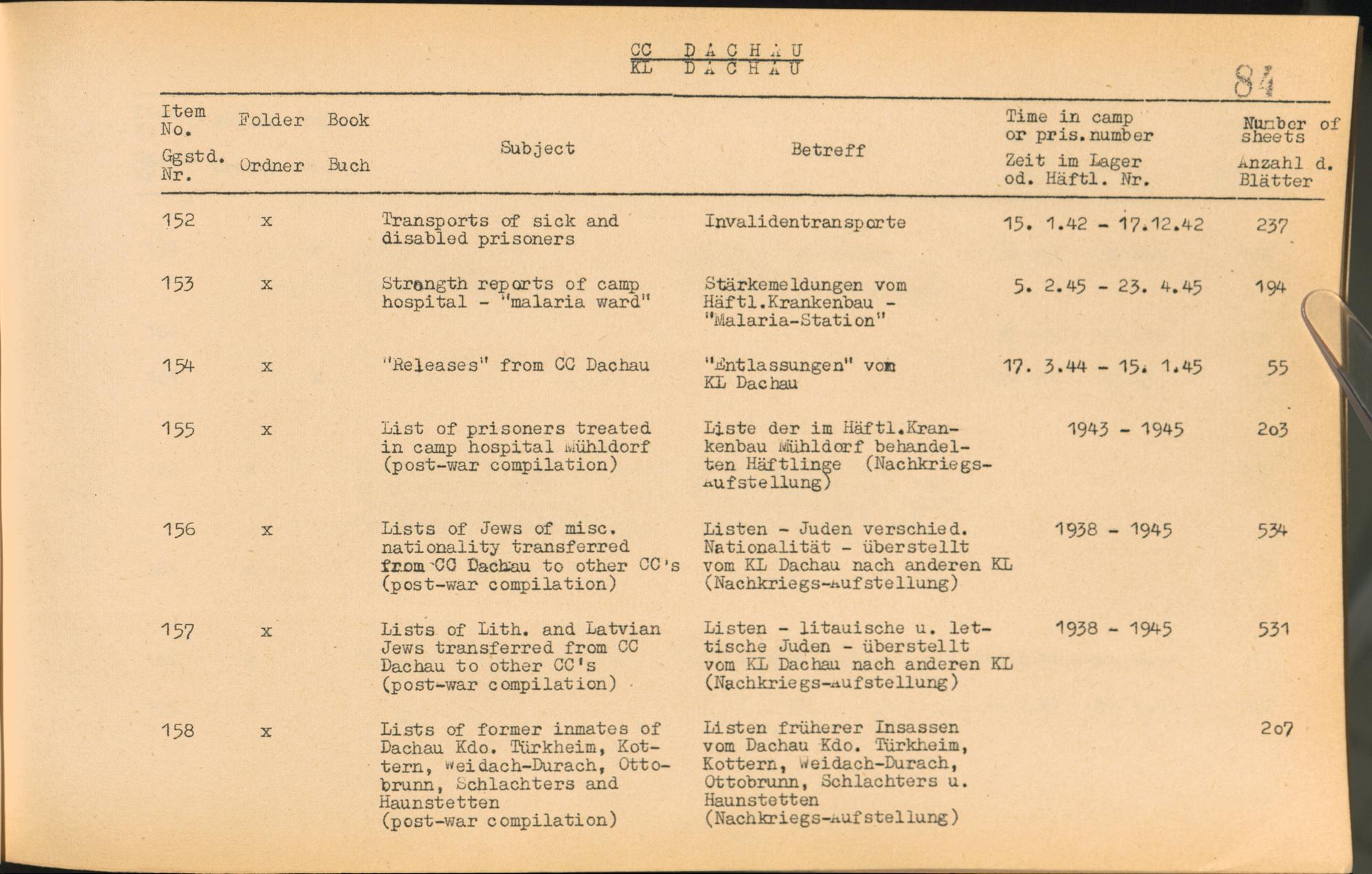 Catalogue of Records held by the International Tracing Service of the Allied High Commission For Germany at Arolsen : Vol. I